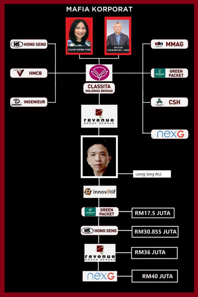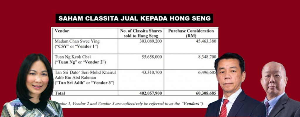 Apa yang menarik, pemilikan ini hampir tidak terhidu umum. Ia hanya terbongkar selepas Madam Chan Swee Ying, isteri kepada tokoh mafia korporat Victor Chin Boon Long, menjual keseluruhan kepentingan keluarga mereka dalam Classita kepada Hong Seng. Transaksi itu membuka rahsia — wujudnya bekas penjawat awam tertinggi dalam jaringan korporat yang dikuasai Victor Chin.