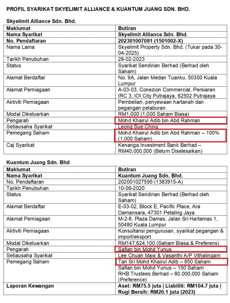 Pada tahun 2023, dunia korporat dikejutkan oleh pendedahan Tan Sri Mohd Khairul Adib, bekas Ketua Setiausaha (KSU/KPPA) memiliki kepentingan besar dalam HS Green Valley Sdn Bhd — anak syarikat Hong Seng Consolidated Bhd (Ah long mafia korporat). Melalui syarikat tersebut, beliau memegang 43.3 juta unit saham Classita Holdings Berhad, dengan nilai anggaran melebihi RM6.4 juta.