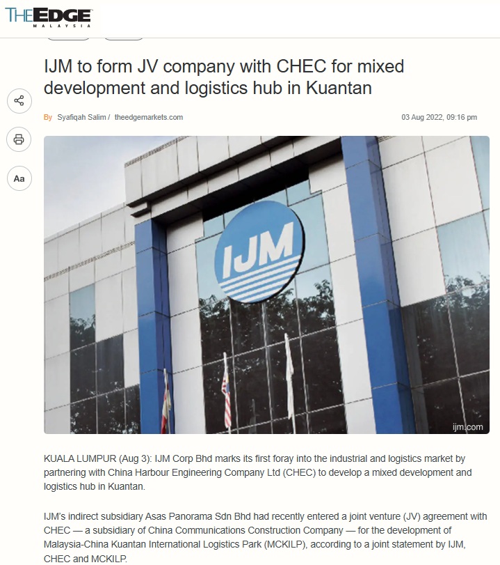 Untuk Rekod: Hubungan Kerjasama IJM Dengan Syarikat China Sebelum Ini