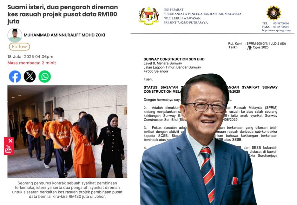 Ironinya, Sunway sendiri bukan asing daripada skandal siasatan SPRM. Pada Ogos 2025, SPRM pernah menyiasat Sunway Construction Group Berhad berhubung skandal projek pusat data di Johor bernilai lebih RM180 juta. Dalam siasatan itu, RM7.5 juta tunai dirampas,jongkong emas, jam tangan mewah dan barangan kemas dilaporkan ditemui di kediaman seorang pengurus kanan anak syarikat Sunway. Namun, kes berkenaan ditutup selepas pegawai Tan Sri Jeffrey Cheah menjadi kambing hitam dan Sunway menerima pelepasan kes SPRM.