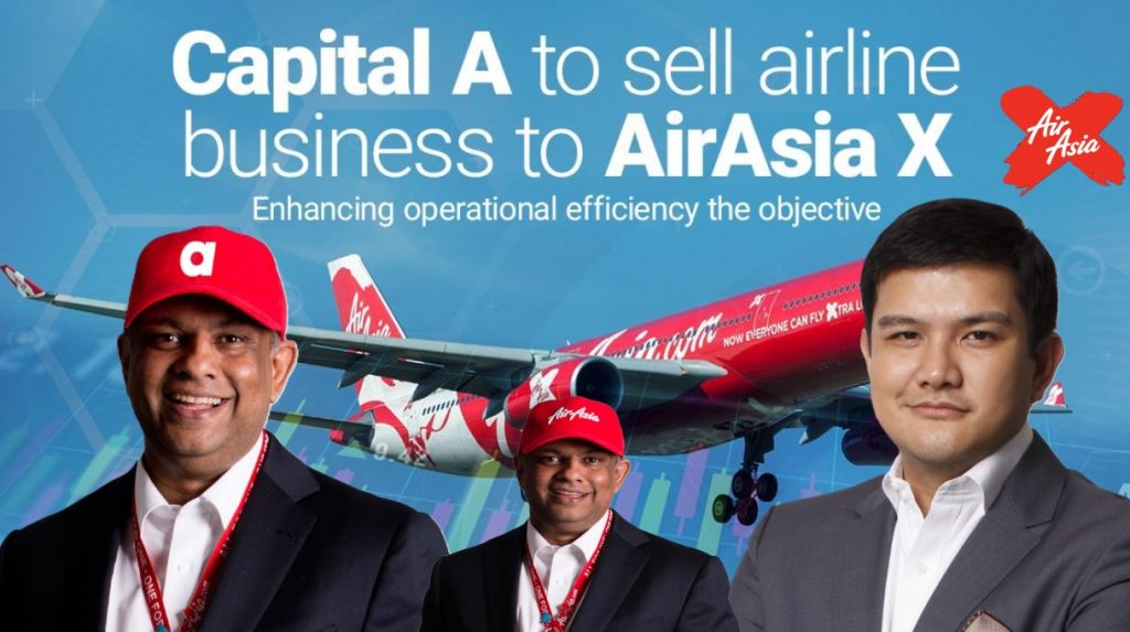 Capital A Berhad (Capital A) dan Kumpulan AirAsia Berhad (Kumpulan AirAsia), yang kini menjadi entiti induk baru bagi AirAsia X Berhad (AirAsia X), mengumumkan penandatanganan perjanjian bersyarat untuk pelupusan strategik Capital A dan pemerolehan strategik Kumpulan AirAsia dalam bidang penerbangan.