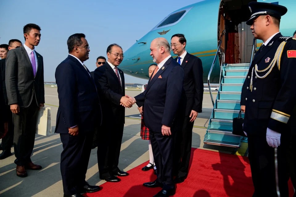 Yang di-Pertuan Agong, yang diiringi oleh Menteri Pengangkutan Anthony Loke, Menteri Perumahan dan Kerajaan Tempatan Nga Kor Ming, serta Tunku Temenggong Johor Tunku Idris Iskandar, tiba di Terminal Rasmi, Lapangan Terbang Antarabangsa Kota Beijing, pada pukul 3.30 petang semalam.