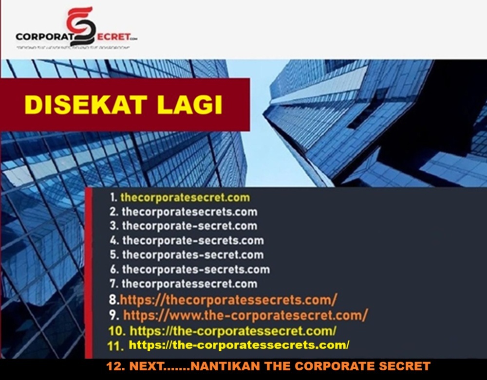 Kepada semua pembaca The Corporate Secret. Kami masih beroperasi di beberapa URL susulan isu sekatan. Setakat ini 11 URL The Corporate Secret. Apapun semua carian The Corporate Secret kekal sedia dan boleh diakses tertakluk penggunaan ‘Virtual Private Network’ atau VPN.