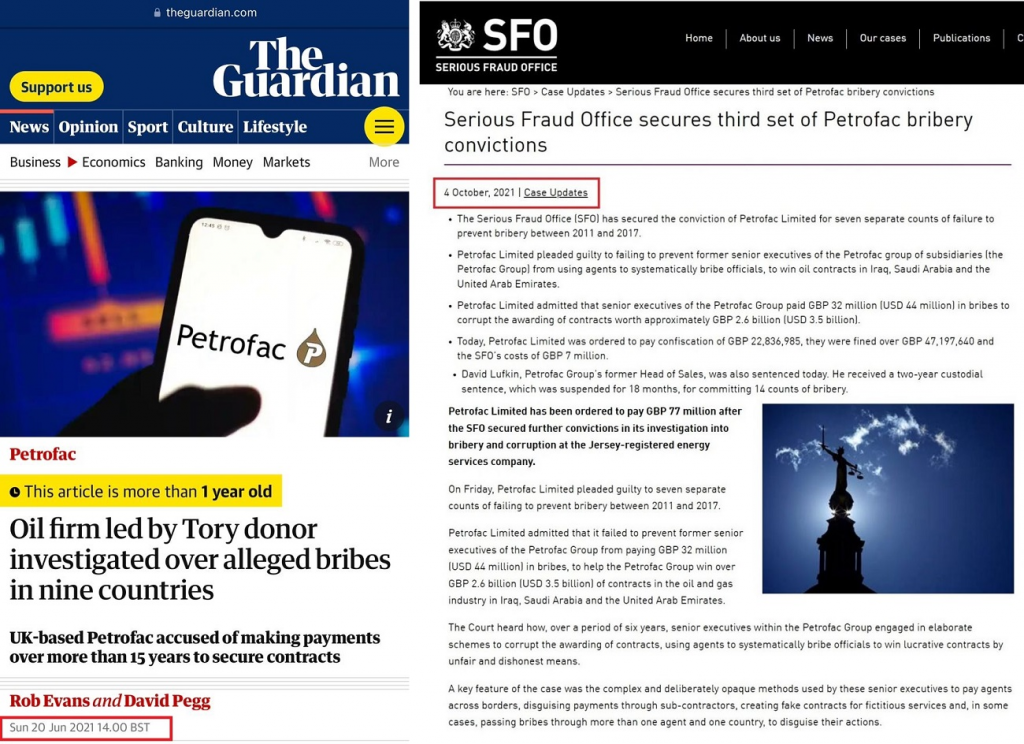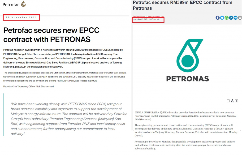 Serious Fraud Office (SFO) mengesahkan kes rasuah Petropac pada tahun Oktober 2021 tetapi Tengku Muhammad Taufik CEO Petronas pula memberikan kontrak kepada syarikat yang melakukan rasuah di 14 buah negara ini dengan jumlah kontrak USD 96 juta (RM399 Juta) bagi membina loji gas darat baharu di negeri Sarawak. Petropac mengumumkannya pada 8 dan 9 Nov 2021.
