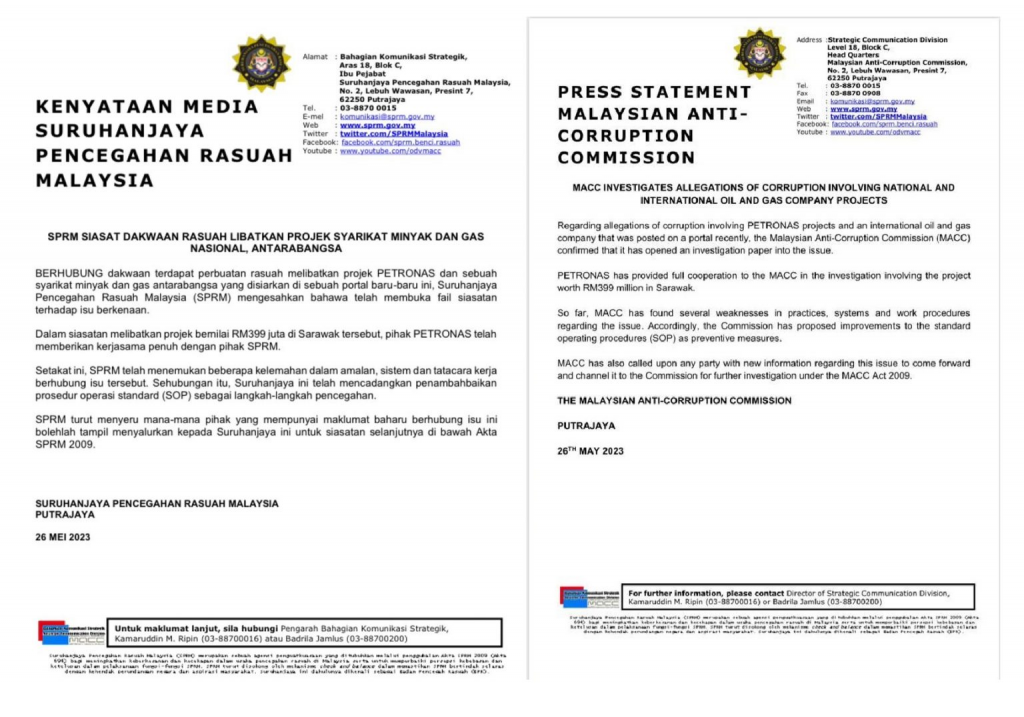 24–28 Mei 2023 – SPRM Sahkan buka kerta siasatan kes rasuah Petronas
