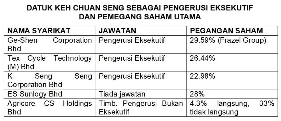 Dalam siri pendedahan sebelum ini, nama Datuk Keh Chuan Seng sering dikaitkan sebagai rakan perniagaan rapat Datuk Seri Chiau Beng Teik, namun tidak banyak diperkatakan secara terbuka.