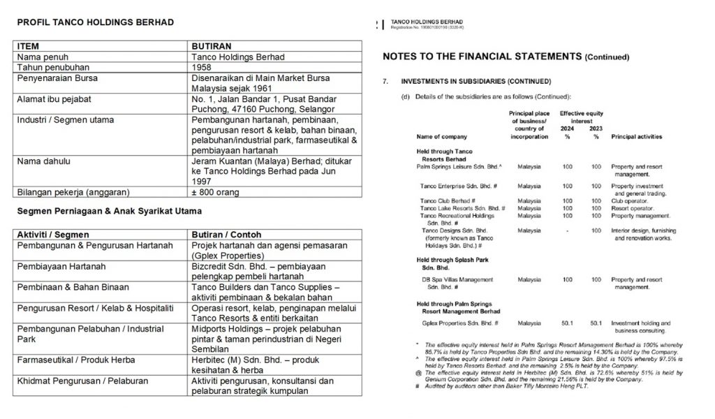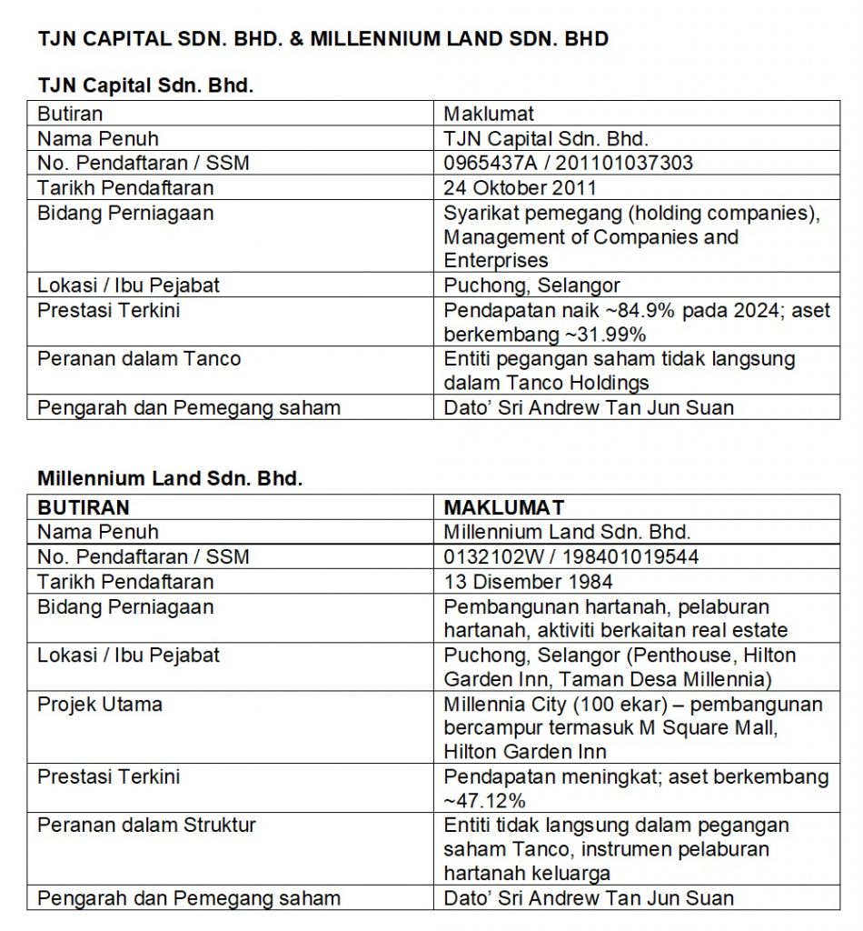 Untuk rekod, Tanco Holdings Berhad ditubuhkan pada 1920-an sebagai sebuah syarikat kecil pembinaan dan hartanah sebelum disenaraikan di Bursa Malaysia. Pengasas asalnya adalah sekumpulan pelabur tempatan dalam sektor pembangunan tanah, sebelum ia berkembang melalui pengambilalihan dan suntikan modal baharu.