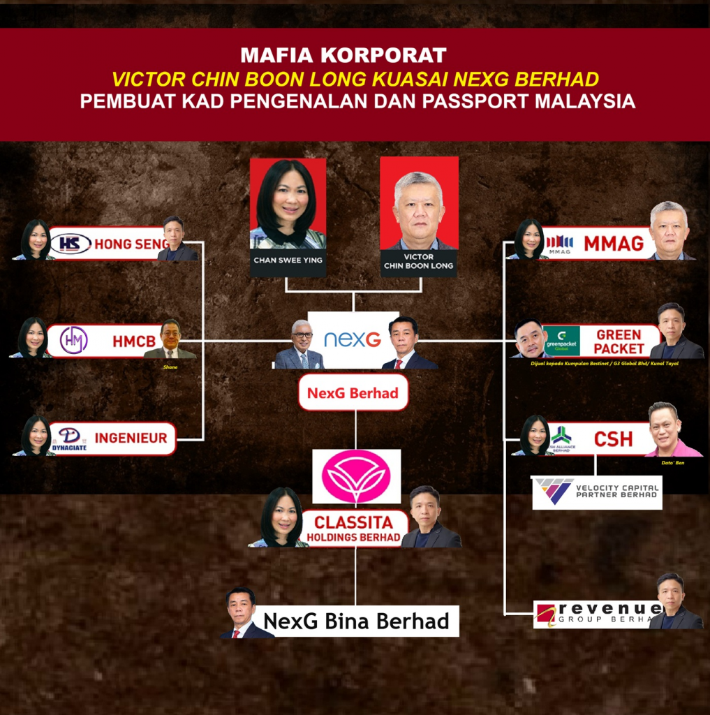 MMAG Holdings sebelum ini dikuasai oleh Mafia Korporat Victor Chin Boon Long, Madam Chan Swee Ying (isteri) dan Dato’ Fam Chee Way atau Dato’ Ben (Velocity Capital Partner Bhd -dulu CSH Alliance Bhd). Victor Chin berjaya menguasai NexG Bhd dan menjadikan Tan Sri Mohd Khairul Adib (Bekas Pengerusi MMAG) sebagai Pemegang Saham terbesar NexG Bhd dan Timbalan Pengerusi.